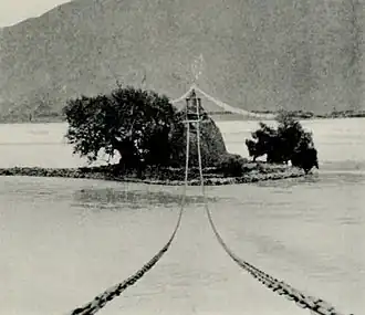 C'est justement l'essor européen de celle-ci qui exporte le pont suspendu sur le continent. En France, la technologie est connue au travers des exploits britanniques relatés dans les journaux. Une mission d'étude des Ponts et Chaussées est menée en 1821, sans aboutir. Le territoire contient un des fleuves les plus difficilement franchissables à l'époque : le Rhône. Les ponts sont très peu nombreux : trois, dont un rompu (le pont d'Avignon) entre Lyon et l'estuaire. En effet, le fleuve est large, très puissant, et ne connaît pas de baisse notable de son flux puisque subissant la fonte des neiges. Sans saison « sèche », il est donc impossible d'édifier des piles selon la méthode éprouvée. La compagnie Jules Seguin (Annonay, Ardèche), dirigée par Jules et Marc Seguin, propose donc un projet innovant en 1822 : le pont suspendu de Tournon[7]. L'entreprise comprend très vite qu'un pont suspendu classique est impossible en France du fait de la qualité médiocre des chaînes. On tente alors de les remplacer par des faisceaux de fils de fer. C'est la naissance du câble. Après plusieurs essais et un refus des Ponts et Chaussées, le projet est finalement accepté.