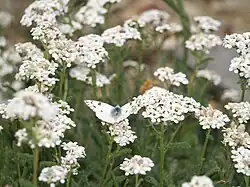 Ce papillon blanc taché de gris présente sur le revers de ses ailes postérieures un souligné vert le long des nervures.