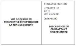 Lors des phases de combat, le jeu s'affiche en vue de dessus en perspective dimétrique[17]. Le joueur peut alors décider quelles actions vont réaliser ses personnages à chaque tour, ces actions prenant effet immédiatement et non à la fin du tour comme c'est souvent le cas dans d'autres jeux de rôle[18]. Optionnellement, le joueur peut laisser l'ordinateur décider des mouvements des personnages à chaque tour[16]. Si les points de vie d'un personnage descendent en dessous de zéro, il doit être soigné par un autre personnage sous peine de mourir[15]. Le groupe est susceptible de rencontrer des ennemis de manière aléatoire ; d'après le magazine Dragon, ces rencontres suivent le même schéma que les « tables de rencontre » dans Donjons et Dragons[1]. Des options sont disponibles en fonction de la classe des personnages. Ainsi, un guerrier peut s'armer d'une arme de mêlée ou de tir à distance, les magiciens peuvent lancer des sorts et les voleurs peuvent attaquer un ennemi par derrière[15]. Lorsqu’ils gagnent des niveaux, les guerriers deviennent capables d'attaquer plus d'une fois par tour et de « balayer » les ennemis proches, blessant ainsi plusieurs créatures d'un seul coup[5]. Les magiciens peuvent mémoriser et lancer un certain nombre de sorts chaque jour. Une fois lancé, un sort doit à nouveau être mémorisé avant d'être réutilisé. Cela nécessite une heure de repos pour l'ensemble du groupe, lors de laquelle ils restent à leur campement. Ce repos permet également de soigner les personnages blessés[19],[20].