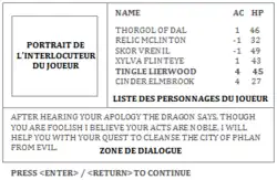 D'après la preview de Computer Gaming World publiée en 1988, l'interface du jeu reprend des éléments de jeux de rôle plus anciens. La vue en trois dimensions (en haut à gauche de l'écran) est ainsi jugée identique à celles de Might and Magic ou de The Bard's Tale et la fenêtre qui affiche la liste des personnages est comparée à celle de Wasteland. La critique note également que l'utilisation d'un personnage pour représenter le groupe est tirée du jeu Ultima V[38]. D'autres critiques soulignent également le manque d'originalité de son interface ou jugent qu'elle « n'est pas un modèle de clarté »[13],[39].