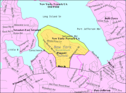 - ↑ (en) « Poquott, New York » [« Données sur Poquott, New York »], sur city-data.com (consulté le ).