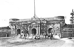 Pour faire face à l'accroissement du trafic civil, en 1854 l'arc de droite (par rapport à la façade extérieure) fut ouvert, suivi, en 1900, de celui de gauche. Sur la façade intérieure, en effet, les nouvelles ouvertures ont remplacé les fenêtres des grandes pièces latérales[17], destinées à l'origine au corps de garde, si bien que la grande pièce de gauche possède encore une grande cheminée[20]. À la même occasion, la double volée d'escaliers intérieurs menant au toit et aux postes d'artillerie est démolie[17].