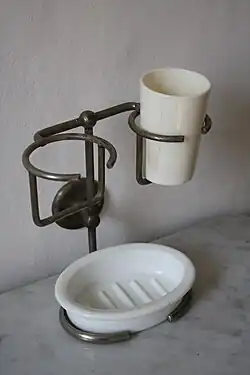 Porte-gobelet et porte-savon en acier et porcelaine (début XXe siècle)