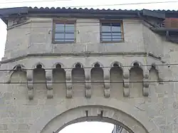 Les mâchicoulis ont été ajoutés deux siècles plus tard. La construction dans laquelle elle était enchâssée et qui se trouvait sur un côté a été détruite afin de permettre le passage de véhicules[3]. Des meurtrières sont encore debout[3].