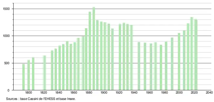 - ↑ Fiches Insee - Populations de référence de la commune pour les années 2006, 2007, 2008, 2009, 2010, 2011, 2012, 2013, 2014, 2015, 2016, 2017, 2018, 2019, 2020, 2021 et 2022.
