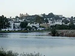 Lagune du port militaire dominée par la cathédrale Saint-Louis de Carthage.