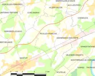 - ↑ « Orthodromie entre Pouilley-Français et Dannemarie-sur-Crète », sur fr.distance.to (consulté le ).