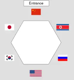 Les pourparlers à six désignent une série de rencontres entre six États - la république populaire de Chine, la Corée du Sud, Corée du Nord, les États-Unis, la fédération de Russie et le Japon.