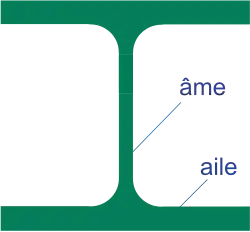 La partie centrale de la poutrelle est l’âme. Les côtés de la poutrelle sont appelés semelles ou ailes.