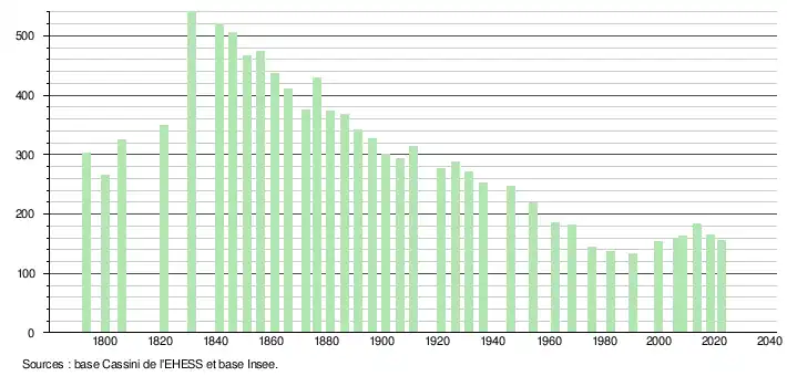 - ↑ Population municipale de référence en vigueur au 1er janvier 2025, millésimée 2022, définie dans les limites territoriales en vigueur au 1er janvier 2024, date de référence statistique : 1er janvier 2022.