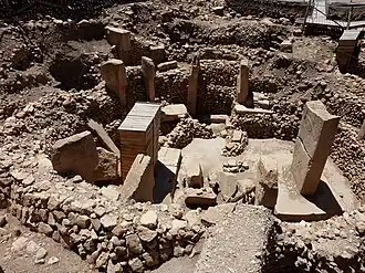 C'est dans le sud que l'on voit se développer au moins dès le Xe millénaire av. J.-C. des sites de chasseurs-cueilleurs de grandes dimensions, comparables à ceux du Levant. Il s'agit de villages peuplés de groupes au moins en partie sédentaires. L'architecture des maisons est déjà développée avec des fondations en pierre et des sols soigneusement réalisés. Une architecture mégalithique caractérise certains sites dont le plus connu et le mieux documenté est Göbekli Tepe (un site voisin semblable est en cours de fouilles à Karahan Tepe)[27],[28]. Ce site présente de vastes enclos constitués de piliers en pierre dont beaucoup sont gravés de figures d'animaux. Les productions matérielles de ces groupes sont également de grande qualité, avec des vases en pierre très décorés, des éléments de parure, du matériel de mouture, par exemple à Körtik Tepe. L'outillage en os est diversifié et se caractérise notamment par des objets ornés de décors géométriques et de décors animaliers. L'outillage en roche taillée se distingue par la présence de pointes de flèche de morphologies variées réalisées dans des différentes roches, notamment l'obsidienne, qui témoignent d'échanges parfois à longue distance. Ces communautés vivent encore exclusivement de chasse et de cueillette et exploitent les très riches ressources de leur environnement. Durant la même période, les rares données que l'on possède pour les autres régions de l'Anatolie indiquent la présence de communautés de chasseurs-cueilleurs aux productions matérielles beaucoup moins développées.
