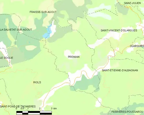 Au , Prémian est catégorisée commune rurale à habitat dispersé, selon la nouvelle grille communale de densité à sept niveaux définie par l'Insee en 2022[I 1].