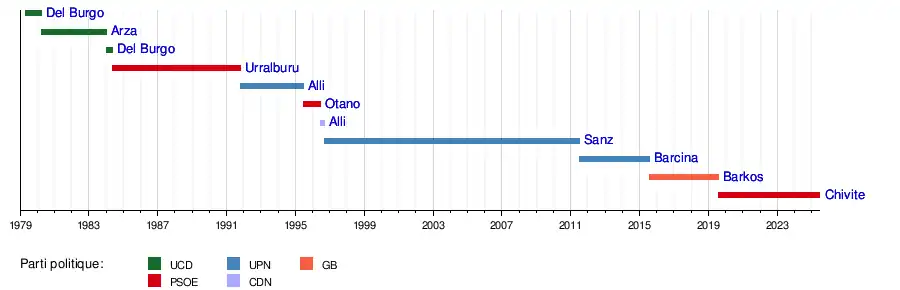 Les premières élections au Parlement de Navarre ont eu lieu le 3 avril 1979, constituant le premier gouvernement de Navarre, qui avait été créé avec le décret royal pacifié du 25 janvier 1979. Jusqu'en 1984, le gouvernement de Navarre relevait du président de la députation provinciale[22].
