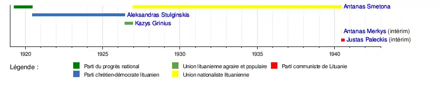 | À la suite du coup d'État du 17 décembre 1926, Jonas Staugaitis et Aleksandras Stulginskis assurent l'intérim du 18 au . | |||||||||