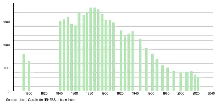 - ↑ Fiches Insee - Populations de référence de la commune pour les années 2006, 2007, 2008, 2009, 2010, 2011, 2012, 2013, 2014, 2015, 2016, 2017, 2018, 2019, 2020, 2021 et 2022.