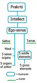 Dans la philosophie du Sāṃkhya, Prakṛti est la matière primordiale à l'état manifesté qui sous le reflet de puruṣa engendre les vingt-trois principes de la manifestation ou de la création tout entière. Ceci étant dû au déséquilibre des trois guṇa que sont sattva, rajas et tamas.