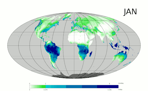 La pluviométrie est l'étude des cumuls de pluie, de neige ou de toute autre forme d'eau grâce à des instruments de mesure in situ ou par télémétrie. Les accumulations à l'état solide viennent s'ajouter par alimentation à un glacier ou à un champ de neige ; le contraire est l'ablation[15]. Le cumul de précipitations liquides et solides est l'un des facteurs conditionnant le climat et par conséquent le développement des sociétés humaines et est souvent un enjeu géopolitique.