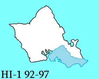 Le 1er district congressionnel d'Hawaï est un district de l'État américain d'Hawaï. Le district est entièrement sur l'île d'Oahu, englobant les zones urbaines de la ville et du Comté d'Honolulu, une ville-comté consolidée qui comprend les plaines centrales et les rives sud d'Oahu, y compris les villes d'Aiea, Mililani, Pearl City, Waipahu et Waimalu. Le district est plus petit et plus densément peuplé que le 2e district congressionnel (qui comprend le reste de l'État). Il est représenté par le Démocrate Ed Case.