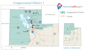 Le 1er district congressionnel de l'Utah dessert la zone nord de l'Utah, y compris les villes d'Ogden, Logan, Park City, Layton, Clearfield, Salt Lake City et la moitié nord du Grand Lac Salé.