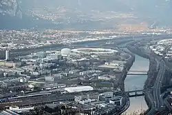 Les 42 000 m2 du centre d'innovation de STMicroelectronics sont quant à eux accessibles par la rue Jules-Horowitz, près de l'EPN campus[104]. Spécialisée dans l'internet des objets, cette entreprise employant 2 000 personnes sur ce site ouvre en 2015 un showroom en accès libre afin de médiatiser son savoir-faire[105]. Gaz Électricité de Grenoble, sixième distributeur français d'électricité et quatrième distributeur français de gaz possède ses locaux administratifs et techniques sur les terrains de l'ancienne usine à gaz. En outre, on peut ajouter à cette liste, même si elles sont situées entre les voies ferrées et l'Isère, les usines de production de Schneider Electric et de Siemens.