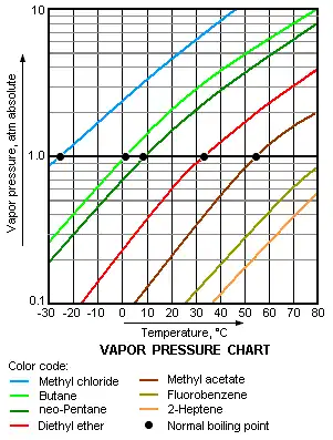 La pression de vapeur saturante représente la tendance des molécules à passer de l'état liquide (ou solide) à l'état gazeux : ainsi, une substance possédant une pression de vapeur saturante élevée (vis-à-vis de la pression atmosphérique) à température ambiante est dite volatile. La pression de vapeur saturante d'une substance augmente de façon non linéaire avec la température selon la formule de Clausius-Clapeyron. Cette température peut être trouvée sur un diagramme de phase