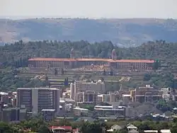 De haut en bas et gauche à droite : vue de Pretoria CBD, Union Buildings, Voortrekker Monument, Bâtiment administrative de l’université de Pretoria, Church Square, Loftus Versfeld Stadium, Palais de justice. | ||||