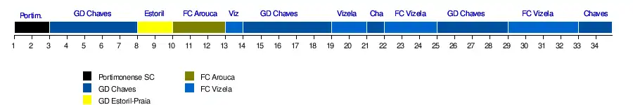 | Rio Ave FC | 3 | 12 | 13 | 11 | 12 | 15 | 16 | 17 | 17 | 15 | 16 | 16 | 15 | 16 | 16 | 15 | 16 | 16 | 16 | 15 | 13 | 15 | 14 | 13 | 14 | 15 | 14 | 12 | 11 | 11 | 12 | 10 | 10 | 11 | 8 | 2 | |