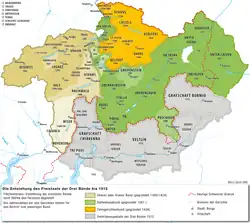 À partir de 1512, l'État des Trois Ligues a contrôlé également les zones adjacentes de Chiavenna, de Bormio et de la Valteline au sud de la crête principale des Alpes. Sa relation avec le Saint-Empire était réglée par un accord (Erbeinung) avec l'empereur Maximilien Ier en 1518.