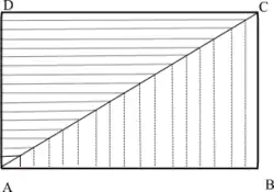 Un triangle de base L = 2πR et de hauteur R est aussi constitué de lignes de longueur 2πr où r varie de 0 à R. Ces segments sont les indivisibles du triangle.