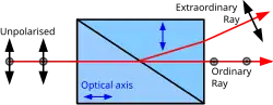 Dans le prisme de Sénarmont, le rayon polarisé s (c’est-à-dire le rayon dont la direction de polarisation est perpendiculaire au plan dans lequel tous les rayons sont contenus, appelé plan d'incidence) passe à travers sans être dévié, tandis que le rayon polarisé p (dont la direction de polarisation est dans le plan d’incidence) est dévié (réfracté) à l’interface interne dans une direction différente. Les deux rayons correspondent à des rayons ordinaires (rayons o) dans le prisme de la première composante, car les deux directions de polarisation sont perpendiculaires à l’axe optique, qui est la direction de propagation. Dans le prisme de la deuxième composante, le rayon polarisé s reste ordinaire (rayon o, polarisé perpendiculairement à l’axe optique), tandis que le rayon polarisé p devient extraordinaire (rayon e), avec une composante polarisée le long de l’axe optique. En conséquence, le rayon polarisé s n’est pas dévié puisque l'indice de réfraction effectif ne change pas à travers l’interface. L’onde polarisée p, quant à elle, est réfractée parce que l'indice de réfraction effectif change lorsqu'on passe d’un rayon o à un rayon e.
