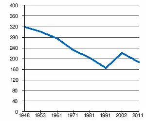 En 2002, l'âge moyen de la population était de 43,4 ans pour les hommes et 45,4 ans pour les femmes[4].