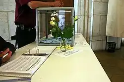Le jour de l'élection, chaque électeur va dans son bureau de vote muni de sa carte d'électeur[38] et, pour les communes de plus de 1 000 habitants, d'une pièce d'identité[39].