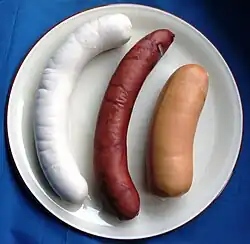 - Schüblig (de) de Saint-Gall, saucisse bouillie fumée de bœuf, de porc et de lard