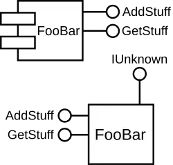 Un composant regroupe un certain nombre de fonctionnalités qui peuvent être appelées depuis un programme externe, ou client. Comme le composant ne contient que du code compilé, il n'est a priori pas possible de savoir de quelle manière elles sont implémentées, à moins de disposer du code source. De plus, pour pouvoir être utilisé, le composant doit fournir une interface, c'est-à-dire un ensemble de fonctions lui permettant de communiquer avec le programme client. Dans le cas où le code source n'est pas disponible, les spécifications détaillées de ces fonctions doivent être fournies avec la documentation.