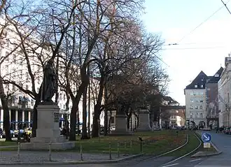 Cinq monuments ornent la place: la statue de Lorenz Westenrieder, la statue de Roland de Lassus, un monument dédié au prince Max-Emmanuel (érigé en 1861 par Friedrich Brugger), un monument dédié à Gluck et une très haute statue hypermoderne du comte de Montgelas, conçue en aluminium par la conceptualiste Karin Sander en 2005. Le monument du baron von Kreittmayr a été transféré à la Maximiliansplatz et n'a pas été reconstruit après la Seconde Guerre mondiale.