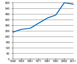 | 287 | 318 | 328 | 384 | 438 | 470 | 600[2] | 586[1] |