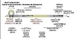 La protéine Tax est constituée de 353 résidus et sa structure présente plusieurs domaines fonctionnels d’interaction protéine-protéine.