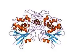 - ↑ (en) Mak AN, Wong YT, An YJ, et al., « Structure-function study of maize ribosome-inactivating protein: implications for the internal inactivation region and the sole glutamate in the active site », Nucleic Acids Res., vol. 35, no 18, , p. 6259–67 (PMID 17855394, PMCID 2094058, DOI 10.1093/nar/gkm687, lire en ligne)