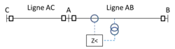 Avec Zs, l'impédance en amont de la protection, Zl, celle de la ligne, c'est-à-dire en aval. Si le ratio est grand, un court-circuit côté ligne fait peu varier le courant, parfois moins qu'un changement de charge[13].
