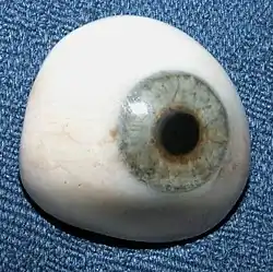 La prothèse oculaire est fabriquée par un oculariste. Il existe actuellement deux types de prothèses : en verre ou en résines synthétiques. L'aigue-marine peut être également employée dans sa conception. Elles se présentent comme une demi-sphère sur laquelle est peint l'iris. Chaque prothèse est fabriquée individuellement pour chaque patient.