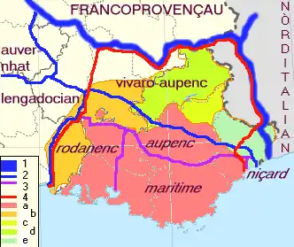 Occitan (provençal, niçois, vivaro-alpin, rhodanien) Ligure (monégasque, royasque) |