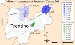 Langues minoritaires du Trentin d'après le recensement de 2011.