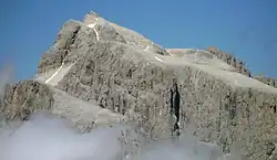 Dans la partie orientale de la province, d'autres cimes des Dolomites s'élèvent, souvent en continuité avec la Vénétie et le Tyrol du Sud voisin. Parmi celles-ci culmine la Marmolada[17], aussi appelée la « reine des Dolomites », l'extrême variété de formes, de paysages et de pics des Pale di San Martino (groupe montagneux partagés avec la province de Belluno), le « château », plus communément nommé groupe du Sella[18] (partagé avec les provinces de Belluno et de Bolzano), le massif de Brenta, les pinacles et les clochers du Latemàr et les formes incomparables du Sassolungo et du Catinaccio (situés entre le Trentin et le Haut-Adige).