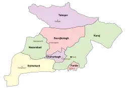 La province d'Alborz est constituée de 7 préfectures :
