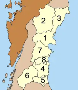 Chumphon est subdivisée en 8 districts (amphoe) : Ces districts sont eux-mêmes subdivisés en 70 sous-districts (tambon) et 674 villages (muban).