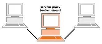 Dans le cadre plus précis des réseaux informatiques, un proxy est alors un programme servant d'intermédiaire pour accéder à un autre réseau, généralement Internet. Par extension, on appelle aussi « proxy » un matériel comme un serveur mis en place pour assurer le fonctionnement de tels services.