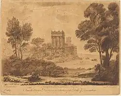 Claude Lorrain est un peintre français établi en Italie. Appartenant à la période de l’art baroque, il s’inscrit dans le courant du classicisme français, dans lequel il excelle dans la peinture de paysage. Dans son œuvre, il reflète un nouveau concept dans l’élaboration du paysage en se basant sur des références classiques, le « paysage idéal », qui met en évidence une conception idéale de la nature et du monde intérieur de l’artiste. Cette façon de traiter le paysage lui donne un caractère plus élaboré et intellectuel et devient l’objet principal de la création de l’artiste, de la mise en forme de sa conception du monde, de son interprétation de sa poésie, qui évoque un espace idéal et parfait[8].