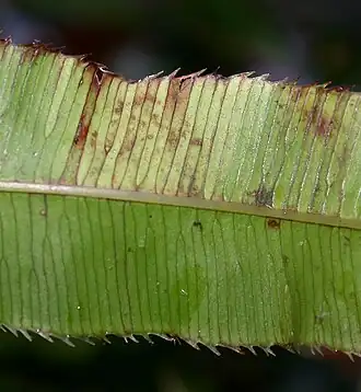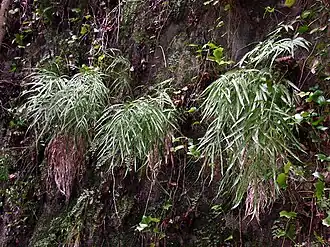 frondes divisées en 2 à 7 segments linéaires lancéolés, certaines stériles et d'autres fertiles, les sores étant le long des bords enroulés de celles-ci.