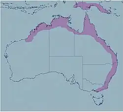 On le trouve en Indonésie, en Nouvelle-Guinée et en Australie.