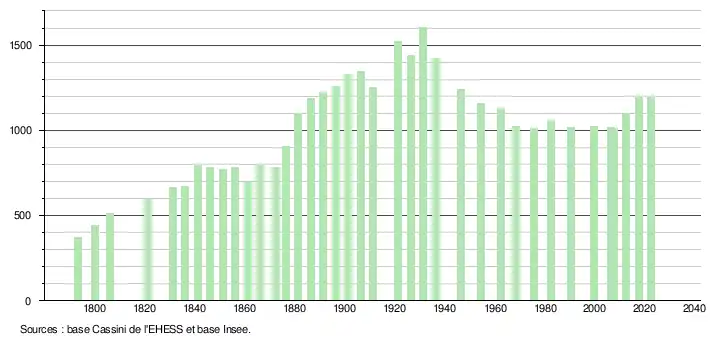 - ↑ Fiches Insee - Populations de référence de la commune pour les années 2006, 2007, 2008, 2009, 2010, 2011, 2012, 2013, 2014, 2015, 2016, 2017, 2018, 2019, 2020, 2021 et 2022.
